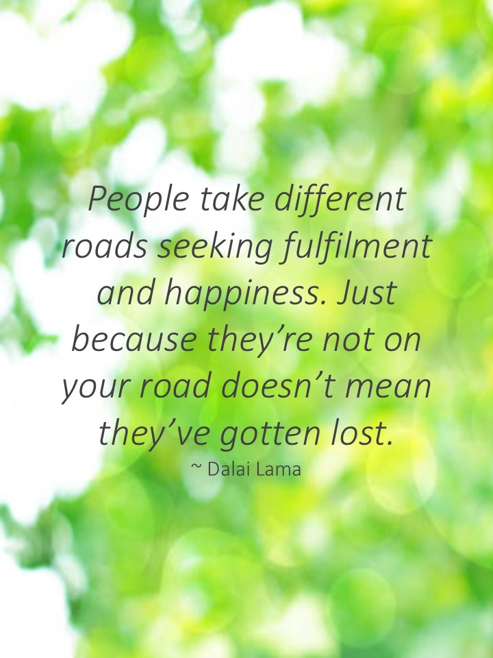 People take different roads seeking fulfilment and happiness. Just because they’re not on your road doesn’t mean they’ve gotten lost.
